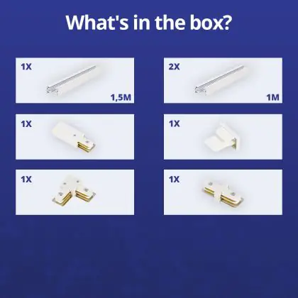 | Fabrikantnaam | Complete L shaped 1-Phase Track Set White – 1.5 x 2 meters incl. End Cap, Power Connector and L-Con | |