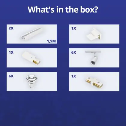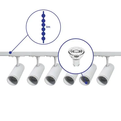 | Fabrikantnaam | Complete Straight 3-meter 1-Phase Track Set White incl. 6x Spot fixture + GU10 2700K 3W Dim – 2x 1.5 | |
