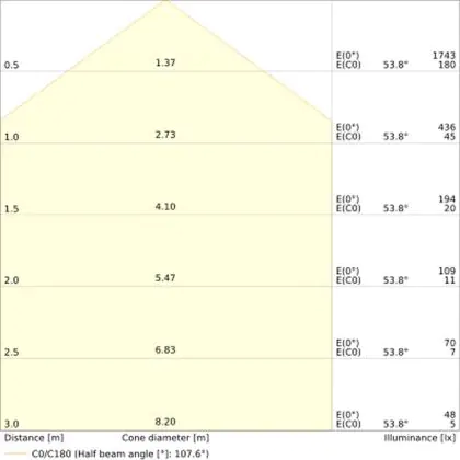 ![]() De kleurcode is een combinatie van de kleurweergave (CRI) en lichtkleur (Kelvin). Het eerste getal is de kleurweergave (1 = zeer slechte kleurweergave, 9 = maximale kleurechtheid). Het tweede en derde cijfer betreft de lichtkleur. Een lamp met kleurcode 830 heeft bijvoorbeeld een goede kleurweergave en straalt een warm wit licht uit (3000K), waar een lamp met de kleurcode 940 een uitstekende CRI heeft en een koel wit licht (4000K) uitstraalt. |