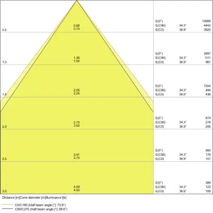 ![]() De kleurcode is een combinatie van de kleurweergave (CRI) en lichtkleur (Kelvin). Het eerste getal is de kleurweergave (1 = zeer slechte kleurweergave, 9 = maximale kleurechtheid). Het tweede en derde cijfer betreft de lichtkleur. Een lamp met kleurcode 830 heeft bijvoorbeeld een goede kleurweergave en straalt een warm wit licht uit (3000K), waar een lamp met de kleurcode 940 een uitstekende CRI heeft en een koel wit licht (4000K) uitstraalt. |