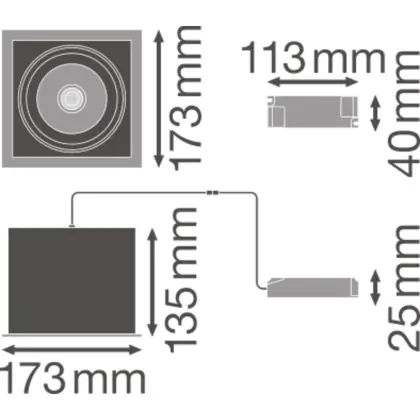 Beschrijving Ledvance LED Spot Vierkant Multi Kantelbaar Zwart-Wit 30W 2700lm 38D - 840 Koel Wit | Zaagmaat 164mm