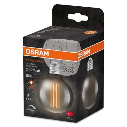 Beschrijving Ledvance Vintage 1906 LED E27 Globe Smoke 11W 500lm - 818 Zeer Warm Wit | Dimbaar - Vervangt 42W