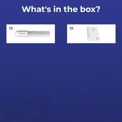 Deze Noxion LED TL buis heeft een Lumen / Watt efficiëntie van lm/W. Dit is de waarde die je verkrijgt door de lichtopbrengst (1950 Lumen) te delen door het wattage (14W) van deze lichtbron. Hoe weet je of jouw lichtbron een goede efficiëntie heeft? In dit geval ligt de lm/W waarde boven de 65. Je kunt er ook voor kiezen om een LED geïntegreerd TL armatuur te kopen. Hierbij heb je de keuze uit diverse (waterdichte) LED montagebalken, die in een divers aantal Lumen verkrijgbaar zijn. Een (dimbaar) LED paneel is ook een slimme optie, met name voor ruimtes met een systeemplafond (eenvoudige installatie) en kantoren (UGR<19 varianten).