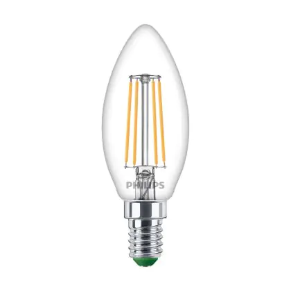 Beschrijving Philips Master Ultra Efficient LED E14 Kaars Filament Helder 2.3W 485lm - 827 Zeer Warm Wit | Vervangt 40W