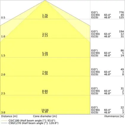 De lichtopbrengst (Lumen), geeft weer hoe krachtig het uitgestraalde licht is. Dit is belangrijk om te weten om de juiste sfeer te creëren. 0 tot 400 Lumen is bij uitstek geschikt voor accent- of sfeerverlichting. Een hoger aantal Lumen is, afhankelijk van de grootte van de ruimte, beter geschikt als ondersteunende- of basisverlichting. Heb je plafonds hoger dan 4 meter, dan is een lichtopbrengst van minimaal 8000lm aan te raden indien heldere verliching gewenst is (vb. in werkomgevingen).